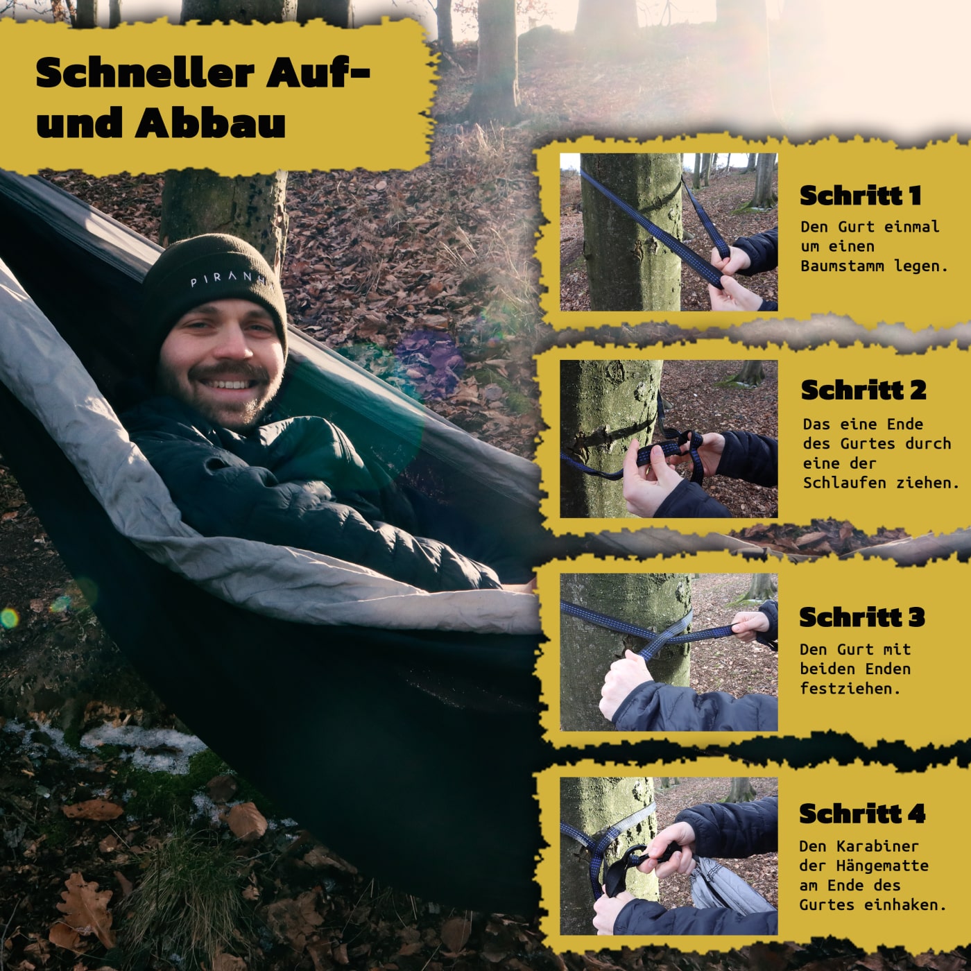 ✔️[EINFACHER AUFBAU] Mit etwas Übung ist die Hängematte innerhalt von nicht einmal 90 Sekunden aufgebaut!
